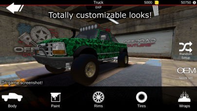 You build your rig the way you want it. You have total control over chassis setup - stiffness, damping, travel, etc... and can even swap to a different type of suspension if you want (want a modern truck with an I-Beam setup in front, and a solid axle in back? No problem.) For vehicle control you're given Tilt, Arrow, or on-screen Steering wheel controls. You choose!