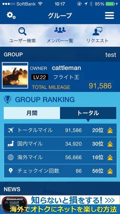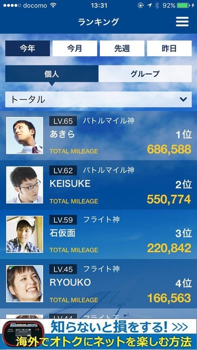 世界中の空港を利用した移動距離を競うアプリ・BattleMileage