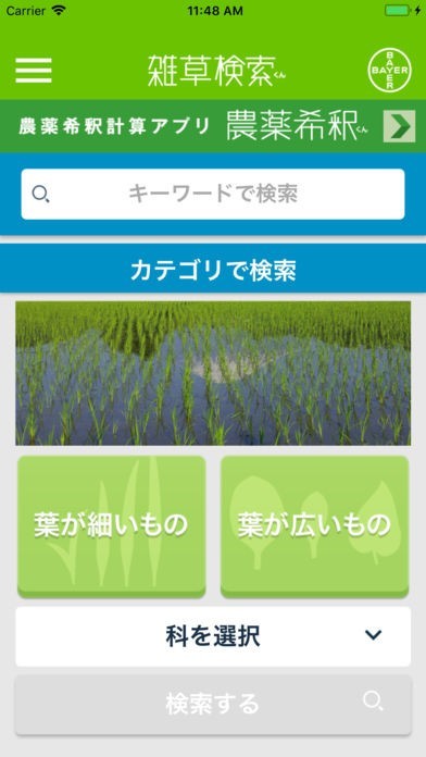 農作業の際に邪魔となる雑草が掲載された図鑑アプリです。雑草の名前や科、葉の形などの特徴から検索でき簡単に除去の対象となる雑草を特定することが出来ます。画像が一緒に表示されるので実物と比較しながら特定できます。