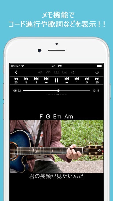 メモ表示機能を使えば動画再生中に歌詞の表示も可能。歌やギターの練習にもお役立ち!