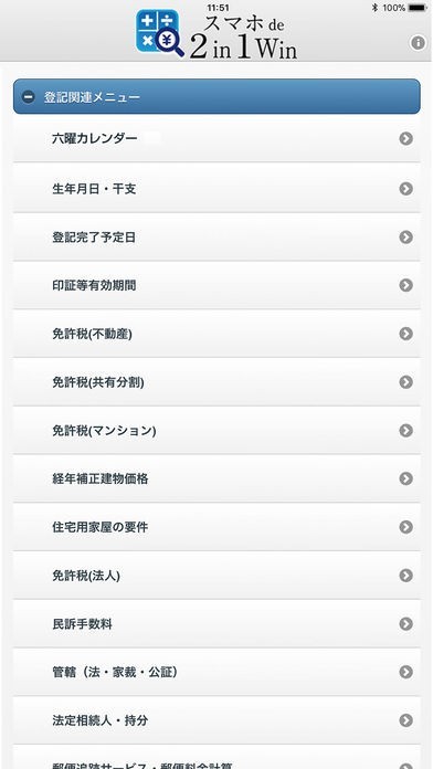 司法書士、税理士、会計士など幅広い士業の業務をサポートしてくれるアプリです。税金の計算から登記業務の補助など、多様な業務の手助けとして使えます。必要なメミューを呼び出すだけの簡単な操作で行えます。