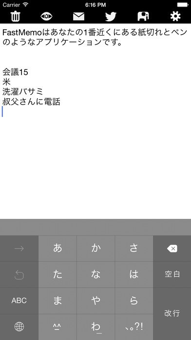 Fast Memo2のアイコンをタップして起動直後からすぐに入力できます。