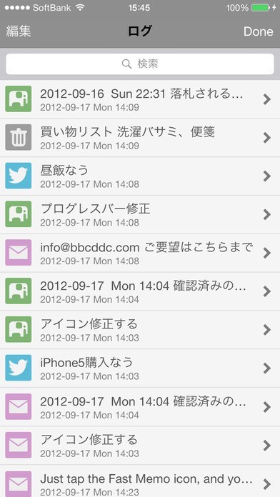 EvernoteやTwitter、メールなどへ送信することでメモを管理できます。