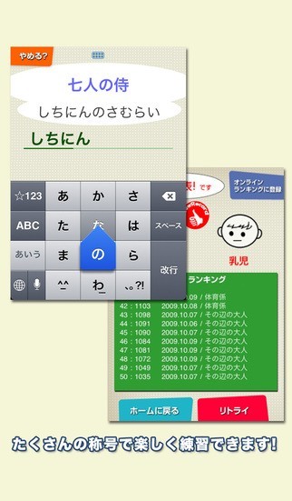 ひらがなのみ入力するので変換効率に記録が左右されません。