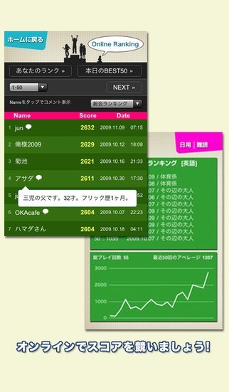 - オンラインランキング (外部キーボードを使用した記録は反映されません)