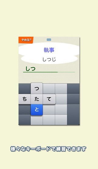 難読漢字モードと英単語モードでは解答を消してクイズ形式でタイピングすることができます。