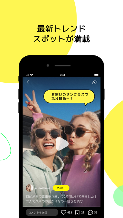 • 好みのコンテンツを見つけたら、「いいね」「保存」「コメント」で、気軽に、好きな気持ちを共有できます。