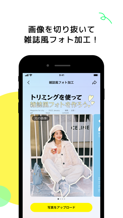 • シンプルな投稿フォームで誰でも簡単操作。スマホ1つで、おしゃれにフォト加工ができます。