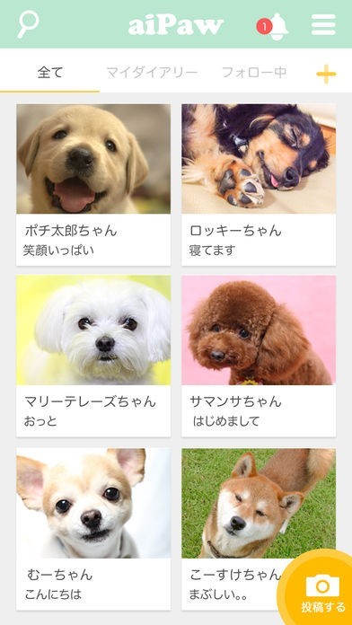 App Storeより引用aiPawはペットのワンちゃんの成長をシェアしながら記録したり、他の人のワンちゃんの日常を見て癒されたりするアプリです。