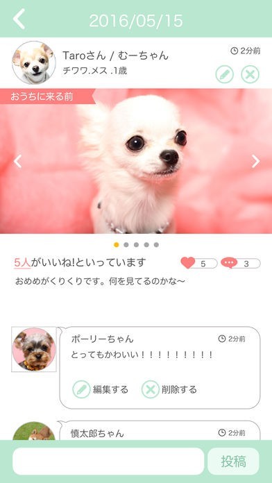 ・ワンちゃんを飼っていなくても、気になるワンちゃんの動向を観られるフォロー機能