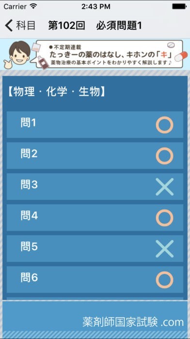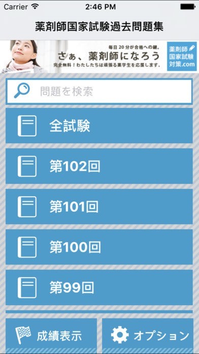 現在無料公開中の薬剤師国家試験対策.com(PC版・スマホ版)の過去問題コンテンツに、最新の問題と様々な機能を追加してアプリケーションにしました。