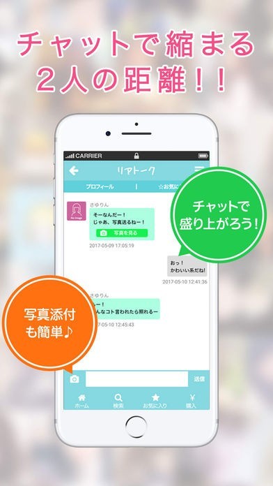 手軽に会話ができるチャットを通して2人の親密度を深めることができます。チャットでは、写真を送受信することもできるため、プロフィール以外のお互いの顔写真を送り合って、お互いに納得した上で関係性を高めていくことができます。