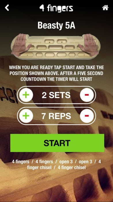 別売りのクライミング用のトレーニング器具「ビーストメーカー」の使い方をガイドしてくれるアプリです。この器具と本アプリを使えば指の力だけで自重を持ち上げるというハードなトレーニングを行えるようになります。