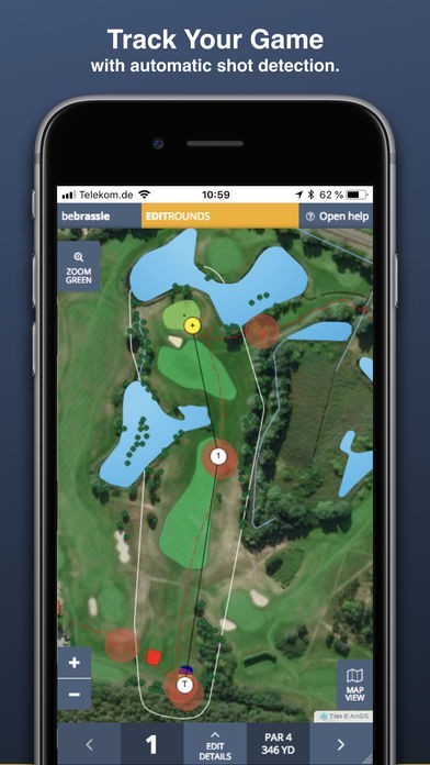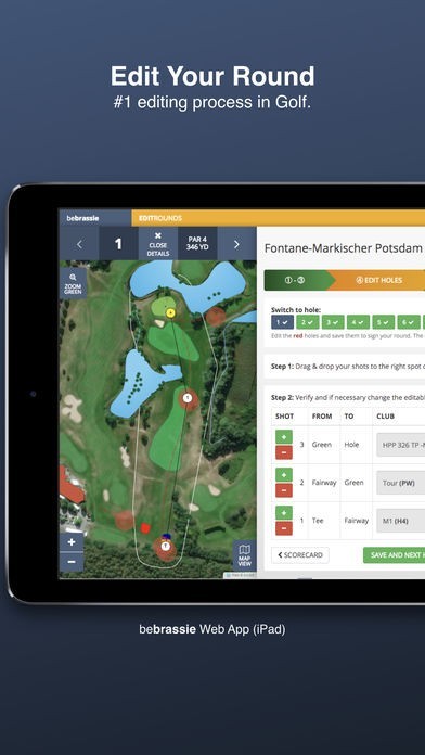 Bebrassieには非常に正確なGPS距離測定器、ストロークプランニング用の直観的なBirdiemaker(コース上のすべての障害物の距離を表示する地図ビュー)、電子スコアカードなどの機能が含まれています。