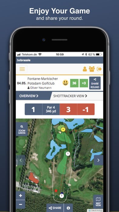 ソーシャルネットワークで友人とラウンドを共有することができます。仲間にあなたのプレイ方法を見せることができ、ホールごとの表示も可能です。