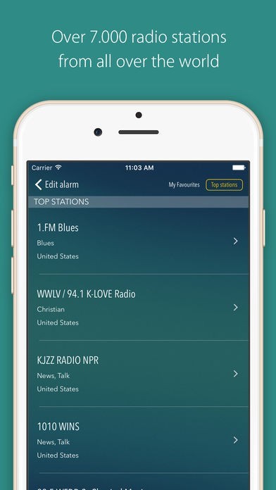 App Storeより引用Wake up every day to your favourite radio station! Download this free app now and turn your iPhone into an alarm clock with radio streaming. With over 7.000 radio stations from all over the world, we deliver you the local news, sports, your favorite music and any radio station from any place in the world straight to your home.