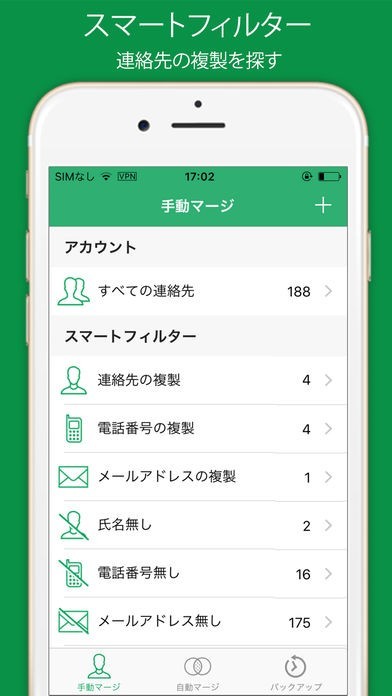 連絡先管理 ‐ 連絡先の複製をマージおよびクリーンアップのスクリーンショット