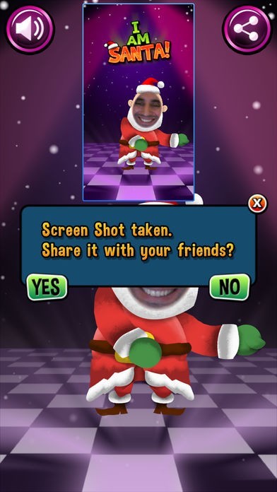 Just point your face at the device's camera and the app will live capture your face expressions and place it on Santa's head!