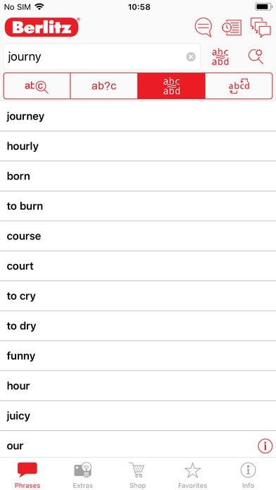 • For immediate access – add important phrases to Favorites or retrieve the phrases you recently looked up in History