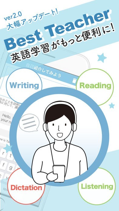 ベストティーチャーは、英語に関する4つの能力、読む、聞く、書く、話すを効果的に鍛えられる本格的な英語学習アプリです。 アプリを起動するとネイティブの発音で英文が読み上げられ、単語を選択しながら読み上げられた英文を構成することが求められます。英会話の能力や聞き取り能力を高めるために必要な、ディクテーションに関する本格的なレッスンを受けられるようになっているのです。 また、問題に正解できない場合にはヒントが表示されるので、諦めることなく最後まで問題に取り組めるようになっています。さらに、正解数や問題の難易度に応じて得点が表示され、利用者間における得点ランキングも表示されるので、他の利用者と競争しながら英語学習に取り組めるアプリとなっています。