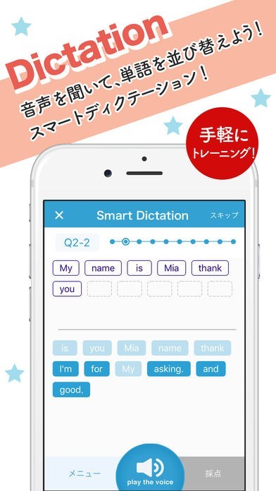 耳で聞いた英文を書き取りするディクテーションに特化した、本格的な英語学習アプリ!