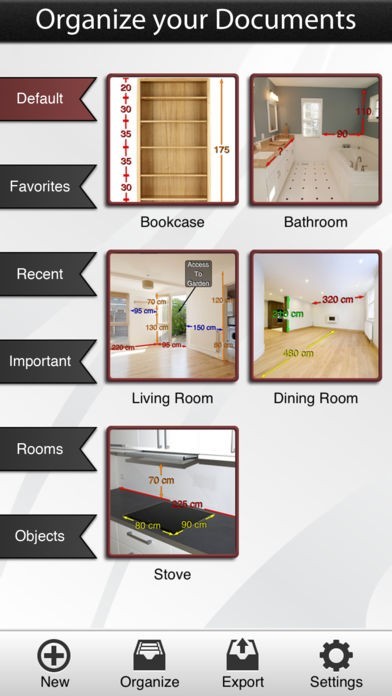 自分が加工をした画像について、カテゴリー別に分けることができます。寝室、リビング、キッチンなど部屋ごとに記録することができるので、欲しい情報にすぐにアクセスできます。