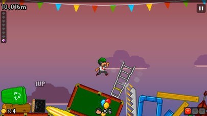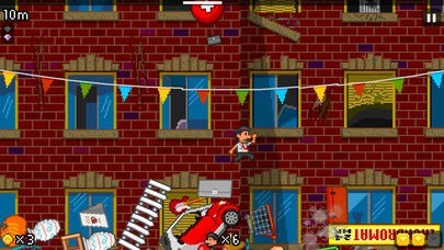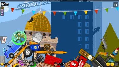 車や鉄骨資材など、プレイヤーが立っている地面めがけて次々に降ってくる巨大なアイテムを避けましょう。到底避けられないサイズの落下物にクスっとしながらついハマってしまいます。