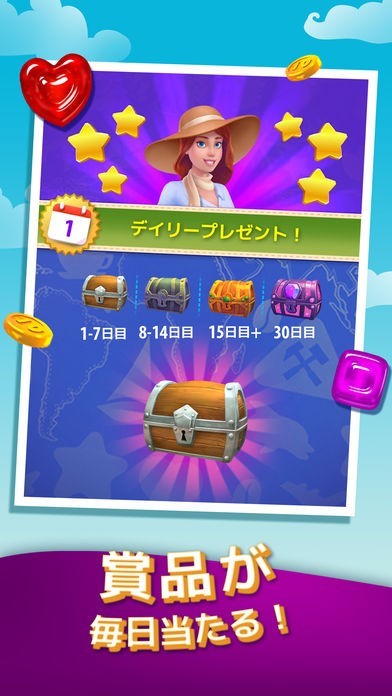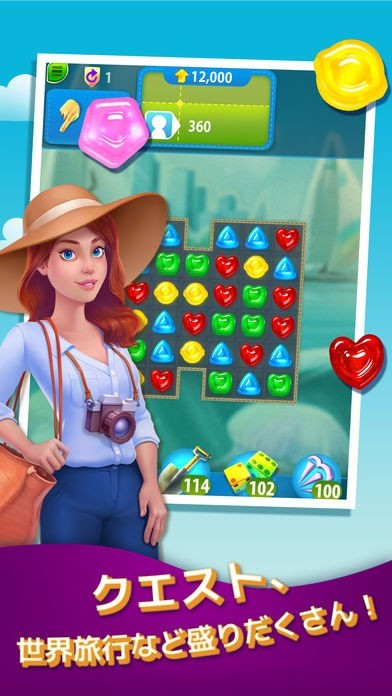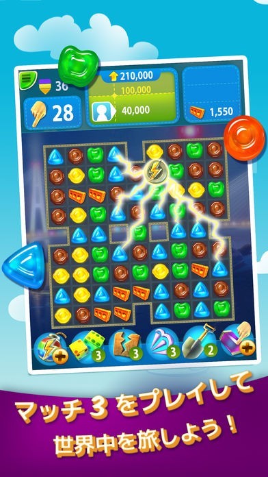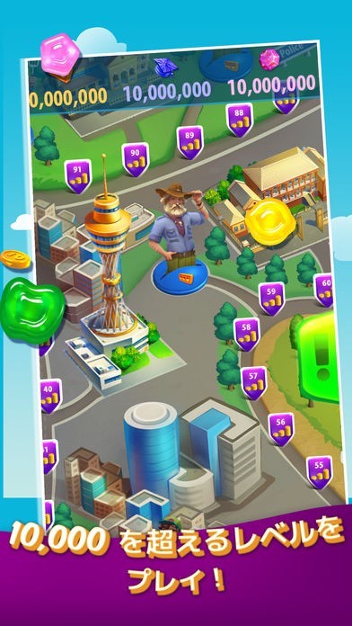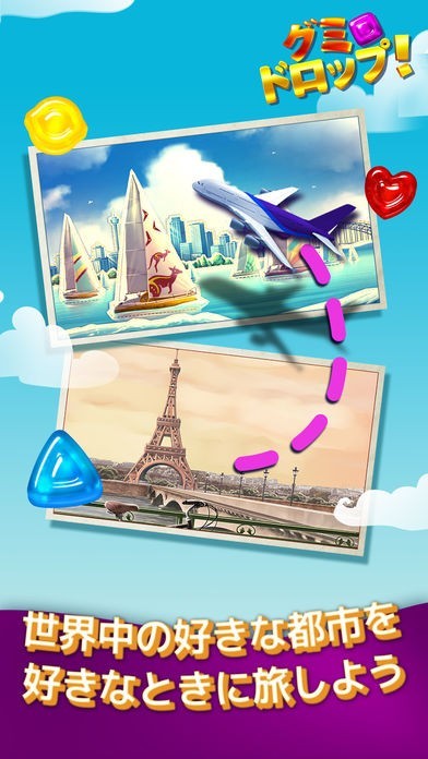 「グミドロップ!」では、3つ以上のグミを並べるだけという簡単なルールなので、ゲームに慣れていない主婦の方やお年寄りの方などでも楽しむことができます。 加えて、最初に丁寧なチュートリアルも用意されていることからやり方が解らなくなる心配は一切ありません。 世界中を旅してステージを攻略していくのですが、60カ国以上に行くことができ、全部で10000以上のステージがあるので、ボリュームが足りなくて不満を感じることはないでしょう。 操作はタップやスワイプなどとても簡単なもので、難しいものはアイテムを使ったりしてクリアすることもでき、デイリープレゼントも貰えるので、毎日が楽しみにもなります。