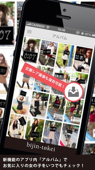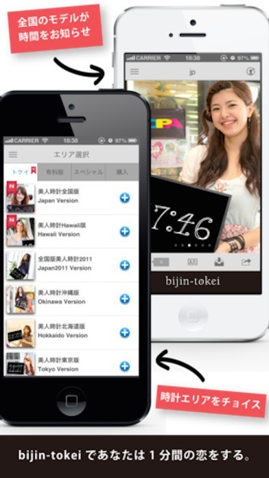 bijin-tokei(美人時計)は、全国の美人素人モデルが1分毎に楽しい時間をお知らせするアプリケーションです。