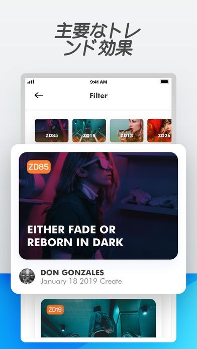 15種類以上のフィルターが収録されていて、タップ操作で画像の彩度等が加工出来るようになっています。ぼかし機能が付与されていて、解像度が変えられるのも利点でしょう。