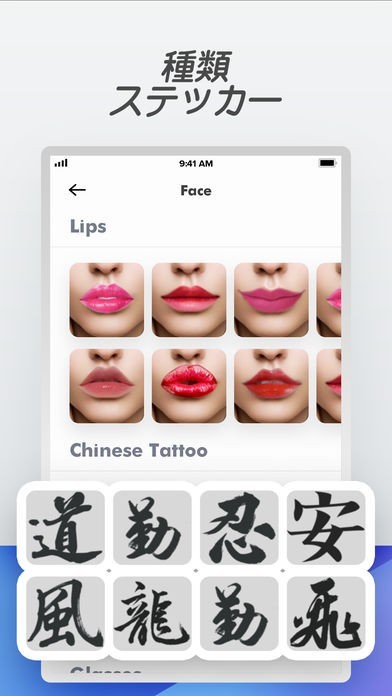 唇やまつ毛等の様々なステッカーが利用出来るので、可愛らしい写真にアレンジしたい時に便利です。アクセサリー等のシールが貼れるだけでなく、サイズの調整が行えるのも特徴です。