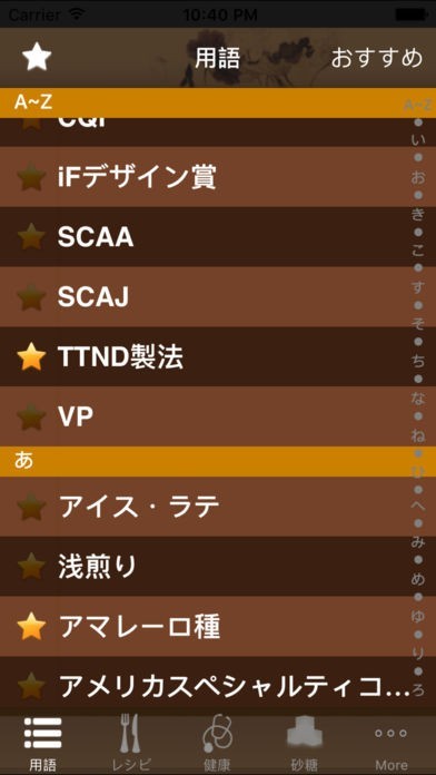 スマホにコーヒー辞典!五十音順だからすぐ見つかる!