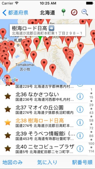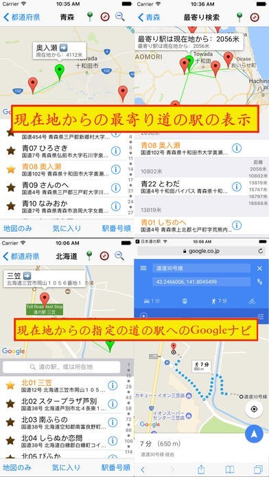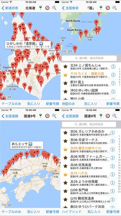 道の駅の最寄り駅の検索や地図からの検索が可能