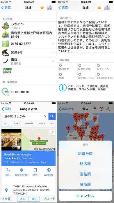 日本道の駅では県内の道の駅の検索や、複数設定した都道府県から道の駅を検索が可能となっており、旅行プランを立てるのに便利になっています。また、それぞれの道の駅は電話番号や所在地だけでなく施設内容の検索も可能です。