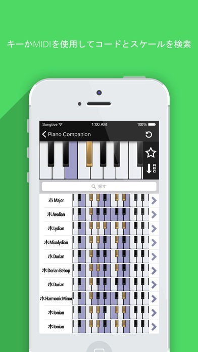 コードネームやスケールの名前を検索できる