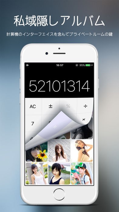 プライベートなファイルを内蔵して隠せる管理アプリです。アイコンやアプリの表示画面が電卓に偽装されていますので、一見して見つかることはありません。誰にも見せられない画像や動画を隠しとおせます。