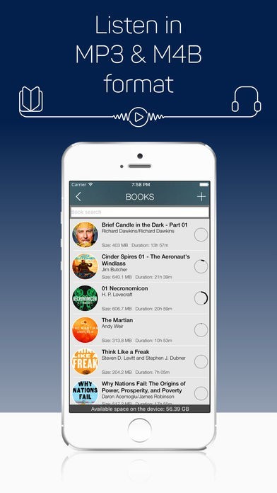 ••• The app does not feature any audiobooks, but only plays your own audio files •••