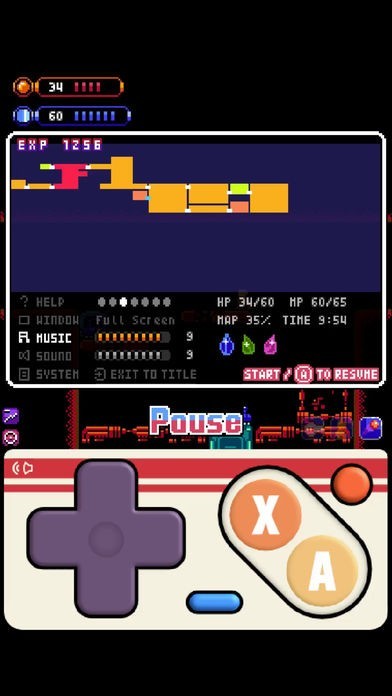 - Explore the side-scrolling maze with many rooms.