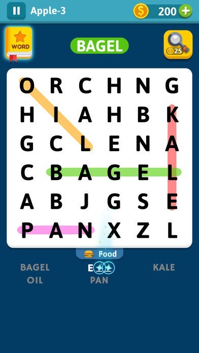 食べ物や場所など様々なジャンルの隠された言葉を探して楽しめる