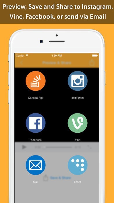 ビデオの作成が終わったら、保存後画面上に表示されるInstagramやFacebookなど、各SNSへのシェアボタンを使用することで、複数のアプリを行き来することなく動画を投稿できます。