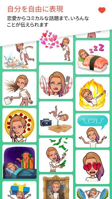 かわいい、面白い絵文字が使えるだけでなく、自分のアバターをデザインして絵文字として使うことができます。