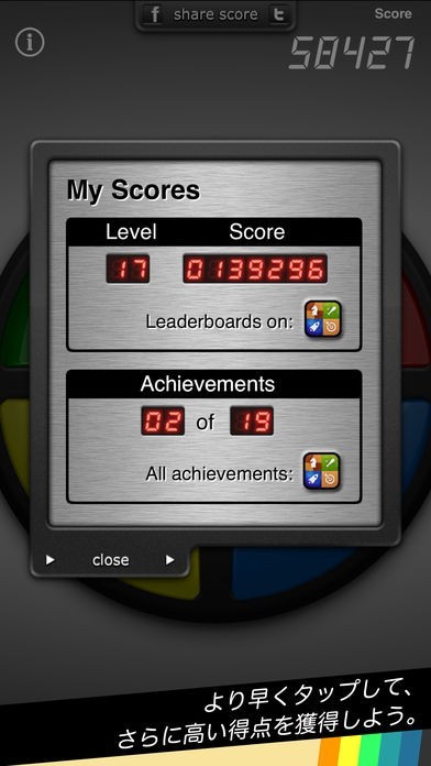 • フェイスブックやツイッターで自分の得点を自慢しよう!