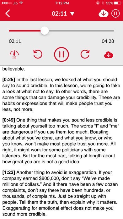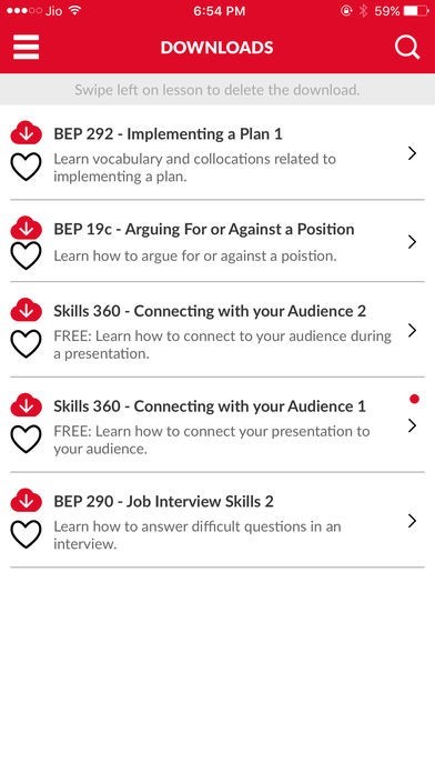 追加のレッスンが毎週更新され、コンテンツはオフラインでも利用できるようにダウンロードしてデバイスに保存できるようになっています。無料で利用できるレッスンとトランスクリプトも豊富に用意されています。