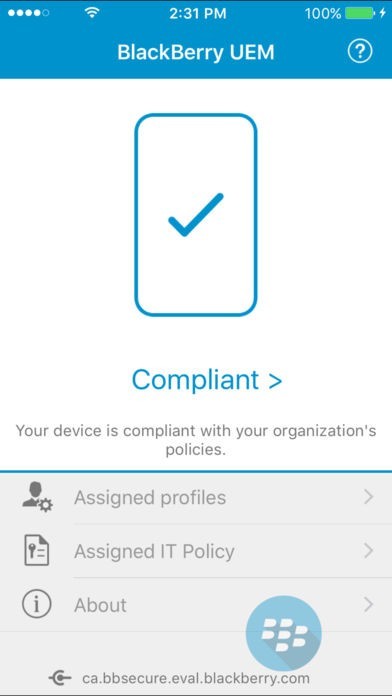 IMPORTANT NOTE: To activate the BlackBerry UEM Client, your organization must use BlackBerry UEM or BES12 for EMM. Please check with your organization’s mobility experts before downloading this app. You will not be able to activate the BlackBerry UEM Client unless your organization creates an account for you from a compatible EMM solution from BlackBerry.