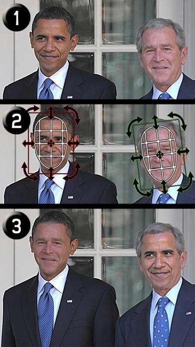 一緒に撮影した人と顔を交換。角度変更可能で自然に仕上がるジョークアプリ