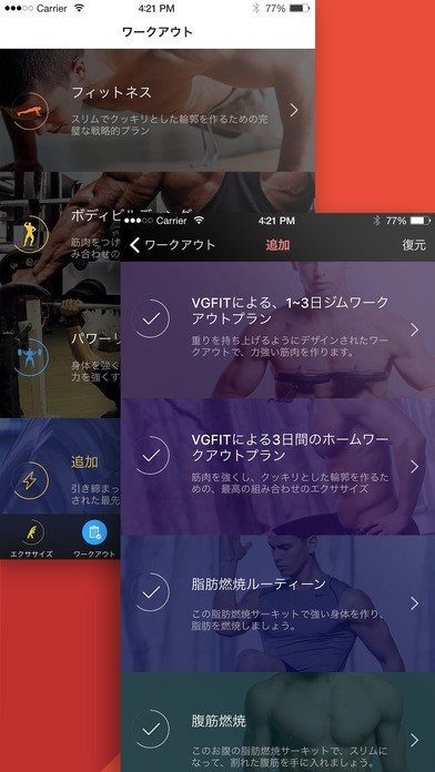 -カスタマイズされたワークアウトプラン作成や画像追加可能;