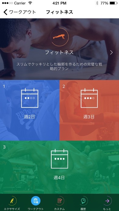 -週に2、3、4日のプリセットワークアウトプランから選択可能;