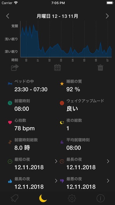- あなたの睡眠データをFacebook、Twitter、またはEmailを通してシェア出来ます;