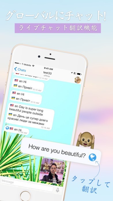 30種類の言語への自動翻訳が可能!世界各国のユーザーとチャットで話そう!