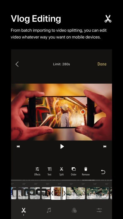 * Vlog Editing: From batch importing to video splitting, you can edit video whatever way you want on mobile devices;